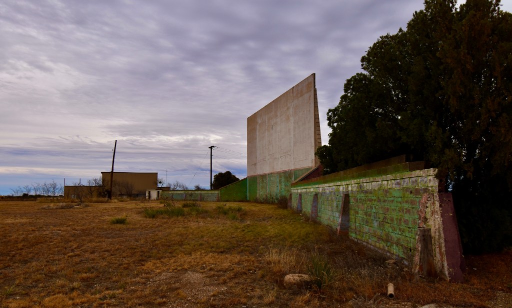 Many other outdoor cinemas share the Midway’s demise. Victims of changing culture and fluctuating populations. Today the screen still stands, a mammoth white cement wall, waiting to continue to perform its duty, frozen in time, just off West Broadway, Sweetwater, Texas.