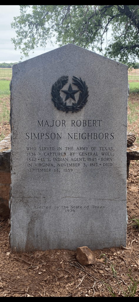 Then, this true Texan was taken to the town cemetery and buried without much honor. Major Robert Simpson Neighbors rests in an unkempt cemetery in a cow pasture. An individual whose history is not inflated or fabricated. A Texan who sacrificed his life in an attempt to maintain peace.